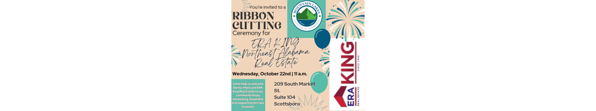 Come help us welcome Donna-Marie and ERA KING Real Estate to Scottsboro/Jackson County! Enjoy networking, warm hospitality, and the excitement of supporting a new business as they officially cut the ribbon. We can’t wait to see you there! 🎀